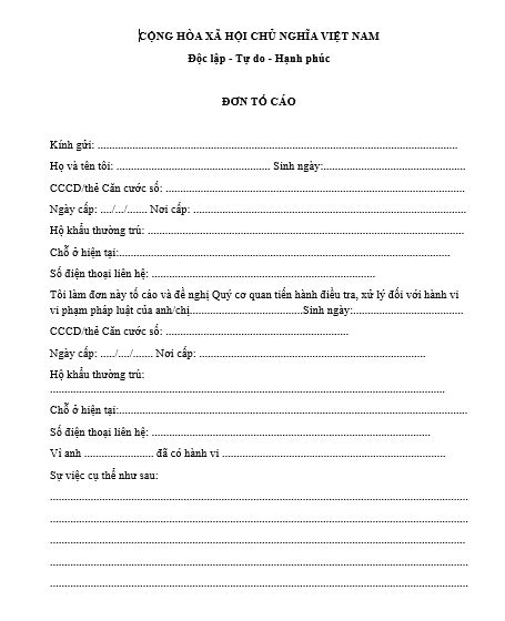 Sau đây là mẫu đơn tố cáo chuẩn năm 2025 có thể tham khảo: